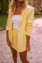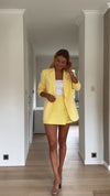 Brighten up your wardrobe with the Yellow Jean Blazer—a standout piece that adds structure and style in one go. Featuring long sleeves, subtle shoulder pads for shape, and sleek side pockets, it’s fully lined for a polished fit. This blazer makes a confident statement whether worn casually or dressed up.